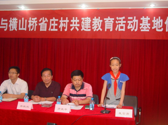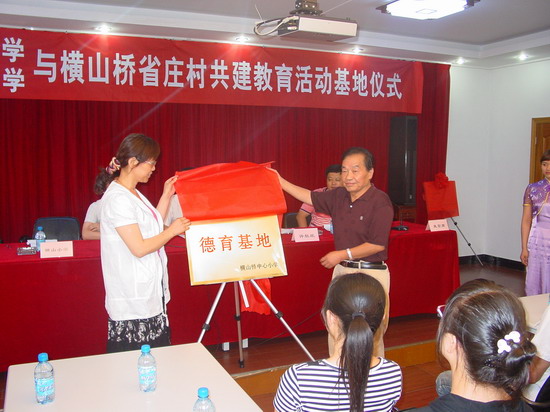 下午二点,横山桥镇省庄村“阳光驿站”暨横山桥高级中学、横山桥中心小学校外教育和实践基地揭牌仪式在老年公寓三楼会议大厅隆重举行。参加本次仪式的有横山桥镇领导、省庄村委主任、热心志愿者、横山桥高级中学和横山桥中心小学的老师和学生代表以及家长代表。省庄村委主任方亚平、横山桥高级中学团委书记戴玉、横山桥中心小学副校长黄荷芬、学生代表、家长代表以及原横山桥镇副镇长许敖欣分别作了重要讲话,他们一致认为:在老年公寓开办德育教育基地是学习实践科学发展观的具体体现,让横山桥的学生走出校门,到社会中去,用自己所学的知识为老年人服务,通过服务来增强他们的社会责任感,对提高他们的社会适应能力、思想道德水平很有帮助,使他们成长为学校里的好学生,家庭里的好孩子,社会上的好公民,同时让他们深切的感受到:关爱今天的老人,就是关爱明天的自己。另外,老年人也可以向学生进行传统教育,传授丰富的人生经验和工作经验,这是一件双赢的好事。
