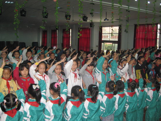 在激昂的队歌声中,全体少先队员见证166名新队员加入了少先队组织。他们接过了五年级的老队员手中的鲜艳红领巾,并在队旗下庄严宣誓:“我决心遵照中国共产党的教导,好好学习,好好工作,好好劳动,准备着:为共产主义事业,贡献出一切力量!”之后,大队辅导员曹老师向新队员表示了热烈的祝贺,并提出了要求,希望他们从身边做起,从小事做起,努力实践“今天我以横小为荣,明天横小以我为荣”的誓言。