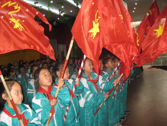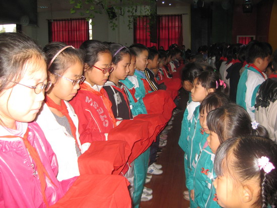 小队员们庄严地宣誓声、嘹亮的呼号声让我们心头震动。戴上鲜红的领巾,成为一名光荣的少先队员,小队员们又站在了一个新的成长起点。相信在快乐的学习和活动中,小队员们一定会积极投入,认真实践,像一只只展翅欲飞的小雏鹰学习新本领,展示新风采。