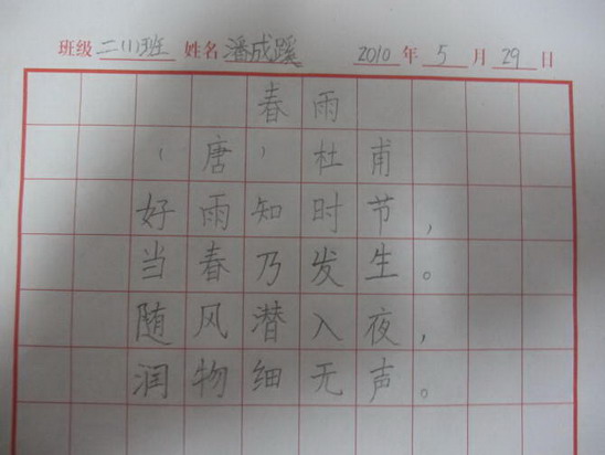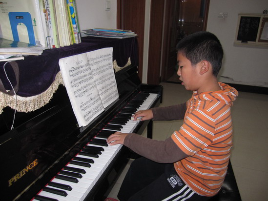 他从小就在父母的精心栽培下利用周末时间学习各种本领。不论寒冬还是酷暑,每天他都能坚持自觉练习钢琴,从来都不用父母操心。如今《献给爱丽斯》、《土耳其进行曲》、《梦中的婚礼》、《绿袖子》、《扎红头绳》、《阿拉伯风》、《保卫黄河》等一些名曲他是信手拈来,老师、同学也被他弹的美妙的钢琴曲给深深陶醉了,他还参加过“唱响世博”才艺大赛呢!每周他还能坚持阅读、写日记、练字、打乒乓,尽管忙得不亦乐乎,但他一样也不肯放弃。凭着浓厚的学习兴趣,他样样学得都很在行。