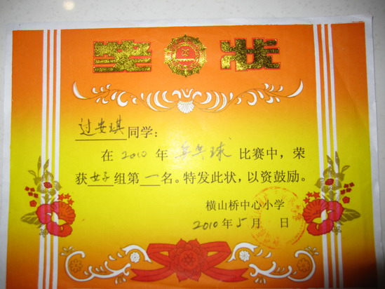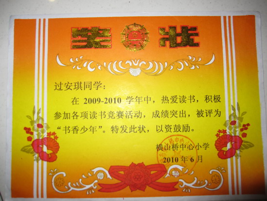 安琪今年11岁了,在横山桥中心小学五(3)班读书。她是个品学兼优的好学生,不但学习成绩优异,还能利用课余时间发展自己的特长。她学习古筝已经4年多了,今年暑假她已经顺利通过了9级。每天放学后她都能坚持1小时的练习,久而久之,她的爸爸妈妈便成了她忠实的听众。安琪不但古筝弹得好,而且画画、乒乓都很棒。瞧,她的书房里张贴的满墙的画真令人羡慕。因此,她还是班里的板报高手呢!每周她还坚持参加乒乓球训练,常常忙得不亦乐乎,在校女子乒乓单打比赛中她荣获第一名。她明白:要做蛟龙,要做骏马,就必须经受各种艰苦的磨砺!她还是一个阅读小能手。每天晚上她都坚持半小时的课外阅读。她还经常把自己从书中获得的知识与爸爸妈妈一同分享、交流,爸爸妈妈都觉得她越来越知书达礼了。