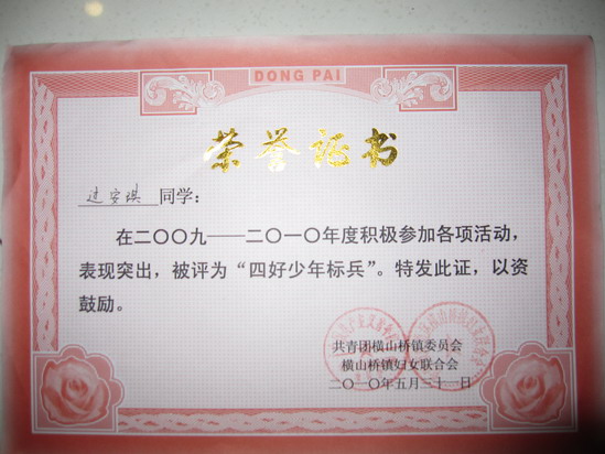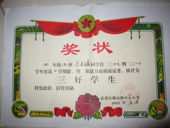 凭着天生的自信和聪颖,凭着多年的勤奋和努力,她一路采撷累累的硕果——她连年被评为校“三好学生”、校“书香少年”、镇“优秀少先队员”、镇“四好少年标兵”……但她永远都不会满足,永远都不会停止自己前进的脚步,因为她的心中拥有一个“梦”——有朝一日能被著名的香港大学录取。