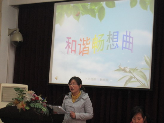 自从上周一(11月29日)下午我们学校开展“和谐满校园”暨“我爱我校 创建和谐校园”(一至四年级)教师演讲比赛以来,全校老师的心一直被感动着,激励着,鼓舞着。那激情的话语、煽情的音乐好像还萦绕在耳畔,那美妙的画面、动人的场景仿佛还时时在眼前展现……
