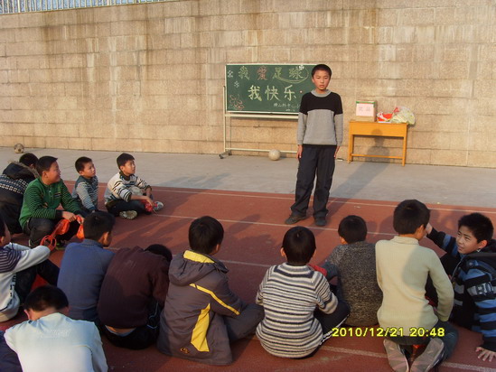 冬天暖暖的阳光照得人心情明媚,横山桥中心小学足球队在田径场召开了一场“我爱足球,我快乐”的主题活动。活动分为足球游戏、联欢会、以及颁奖合影三个部分。在活动中,队员们兴趣盎然,看他们颠球游戏、运球过标志物、表演节目、颁奖、领奖合影,多开心、多投入啊!我校足球队在学校领导的关心重视和全体师生的大力支持下,坚持常年训练,从教练员到运动员经常放弃休息时间,起早贪黑,认真、刻苦地进行训练。功夫不负有心人,在今年的比赛中获得了骄人的成绩。我们将在更高的起点上,秉承常州市教育局长丁伟明局长提出的精神去努力:“坚持在‘坚守’与‘创新’中大力开展学校体育工作,使阳光体育运动蓬勃开展,凸显勃勃生机。”为横山桥中心小学的明天继续增光添彩。