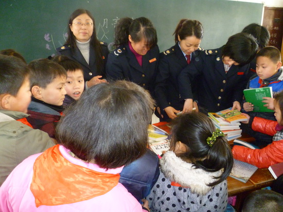 3月8日前夕,在郑陆片税务局何局长的带领下,几位税官妈妈将沉甸甸的书籍包送进了我们的课堂。税官妈妈们满面春风地将书本分给班级里的每一位同学,和蔼可亲地与孩子们交流。孩子们无比激动地接过崭新的书本,便如饥似渴地开始阅读起来。阳光孩子书包里除了教科书之外几乎没有任何课外书籍,因此这些书籍对于孩子们而言,无疑是雪中送炭啊。孩子们从税官妈妈们的身上感受到了暖意,感恩之情不禁油然而生,一声声“谢谢阿姨们!”不正是他们对税官妈妈们的感激之情吗? 相信孩子们定会珍惜这些书籍,好好地阅读,认真地积累,做个见多识广的“读书郎”。