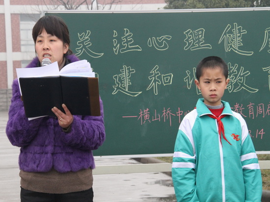 “亲爱的老师们、同学们,大家早上好!今天我讲话的主题是‘沐浴心灵阳光,健康快乐成长’……”第四周星期一(3月14日)升旗仪式上,校总辅导员曹仁花老师在升旗仪式上的发言,拉开了横山桥中心小学生命教育周活动的序幕。