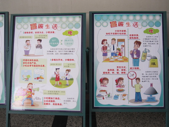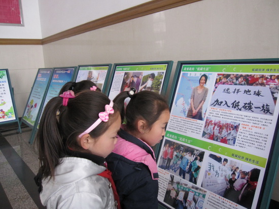 随后大家又观看了“低碳生活,从我做起”的展板。这些展板向师生们介绍了日常生活中如何做到低碳生活,让大家易于接受和动手参与,将低碳生活常识设计成情景游戏,寓教于乐。