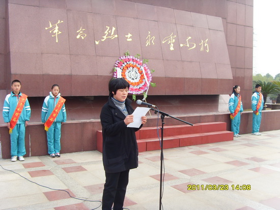 在武进烈士陵园,横山桥中心小学的同学们身穿整洁的校服,佩戴着鲜艳的红领巾,神情肃穆,排队进入烈士陵园。在革命烈士纪念碑前,少先队员们认真聆听了周校长的讲话。周校长深情缅怀革命烈士的丰功伟绩,希望队员们大力发扬先烈们的艰苦奋斗的精神;勉励队员们继承先烈遗志,努力学习。接着,少先队员代表作了表态发言,表达了同学们继承先烈遗志,弘扬革命传统,为家乡建设、为祖国繁荣富强而努力学习,建设美好未来的坚定信念和决心。同学们一双双真挚的眼神,充满了对革命烈士的怀念和无限的敬仰之情。两位学生代表为烈士纪念碑敬献了花圈。然后,少先队员们集体向革命烈士纪念碑默哀。敬仰与哀思,在此刻,都融入这一片静默中……