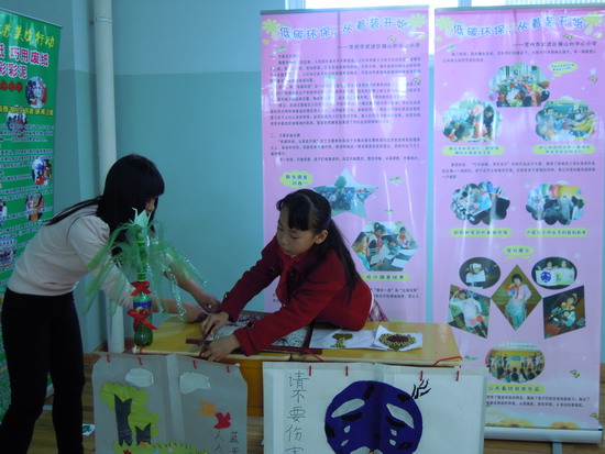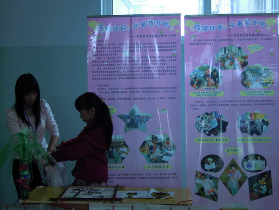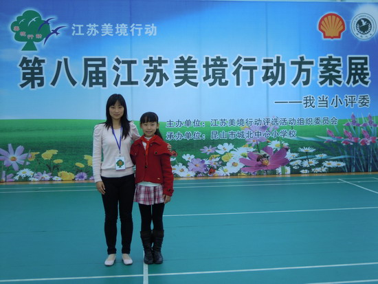在志愿者的带领下,我们参观了昆山市城北中心小学的星火生态园,曹老师还对校园、班级文化建设进行了实地考察。在展示现场,老师和队员将带去的环保展板和实物与到会的有关领导、专家、新闻媒体等代表们进行了互动交流,我们的方案吸引了不少参观者的目光,环保小队员也向大家作了绘声绘色的介绍。在颁奖与启动仪式上,我们观看了关于美境行动宣传成果的VCR,聆听了省市领导和代表的重要讲话,还观看了小朋友的精彩表演:环保服装展、舞蹈《快乐的小铃鼓》、昆曲牡丹亭《游园》等节目。