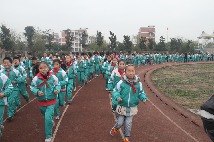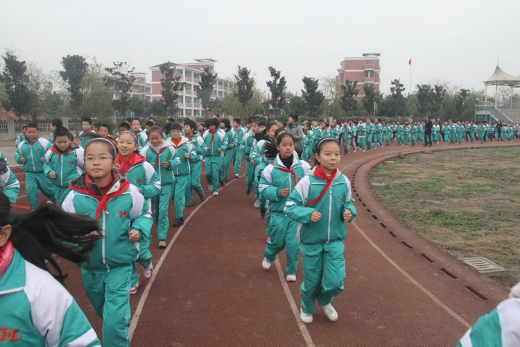 操场上彩旗飘扬,师生们个个精神抖擞,脸上都流露出喜悦之色与期待之情。首先由吴方老师宣读冬季长跑活动的方案,接下来由梁晓云副校长宣读倡议书,最后由蒋建春副校长鸣枪长跑开始,浩浩荡荡的长跑队伍出发了。两位副校长、体育教师在队伍前面领跑,带领我们的学生和老师开始了长跑的征程。全校师生意气风发扬帆远航,快乐长跑、健康长跑将会让他们的生活更加快乐和健康。