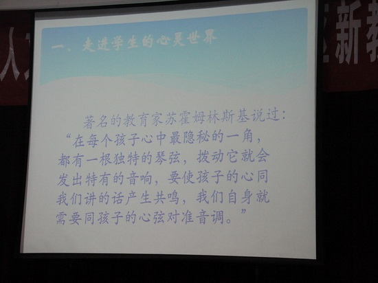 2月13日下午,横山桥中心小学心理课题组全体成员聚集在学校大会议室,举行了题为《洞察学生心理 塑造健全人格》的心理讲座活动。此次活动由心理课题组副组长曹仁花老师担任主讲。曹老师结合自己平时班主任工作中的想法和做法,从五个方面作了阐述:一、走进学生的心灵世界;二、为学生搭建自我展示的平台;三、给学生信任和鼓励;四、注意纠正学生不良心理状况的技巧;五、教师自身必须具备良好的心理品质。曹老师的讲座有理论,有实践,娓娓道来,给人启迪,课题组成员纷纷表示受益匪浅。