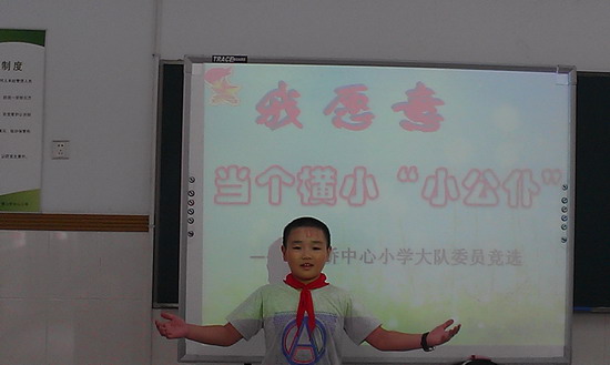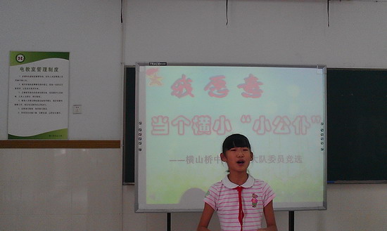 为促进学校少先队工作,增强少先队员的民主意识、参与意识和竞争意识,9月21日下午,横山桥中心小学大队部进行了2012学年大队委员的竞选演讲活动。