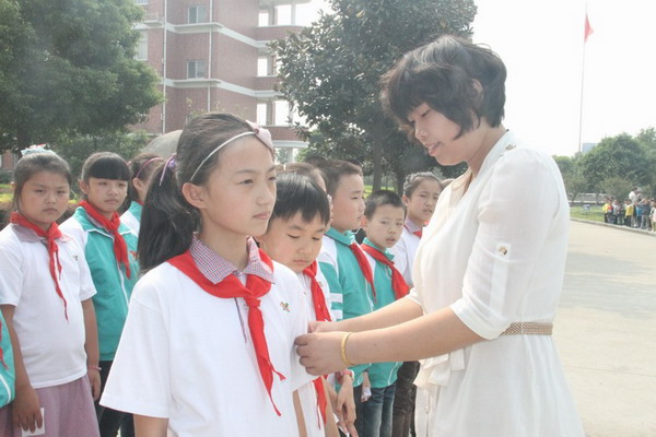 当他们在接受学校领导授予的大队标志时,他们是骄傲的;当他们举起右手庄严宣誓时,他们是严肃的;当大队长朱凌晞代表全体大队委阐述新的工作打算时,他们又是自豪的……