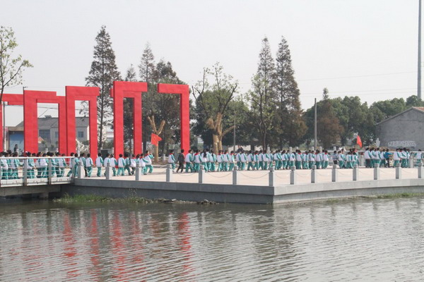 快乐的时光总是那么短暂,不知不觉一个多小时过去了,同学们依依不舍地离别镇中心公园,并在公园门口合影留念。