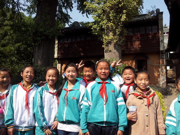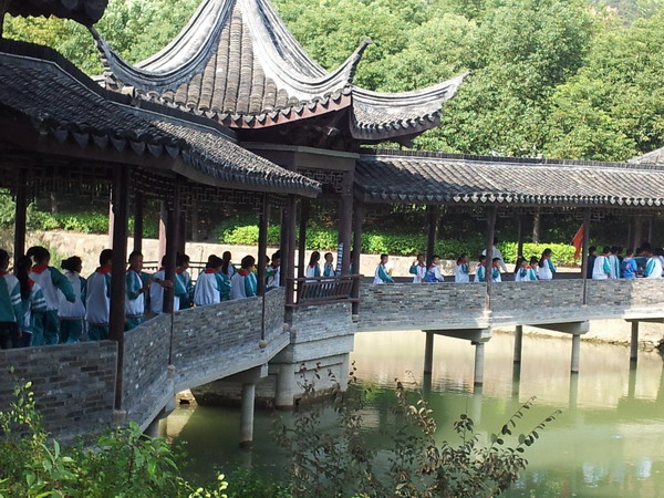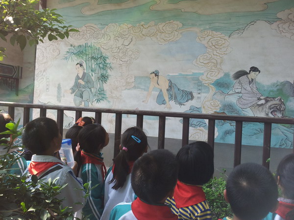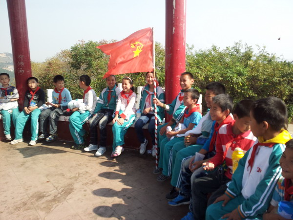 队旗飘飘,阳光很暖人心,孩子们在老师的带领下欢呼雀跃着排上整齐的队伍,带着桂花香,带着喜悦的心情,踏上了秋日考察的旅程。伴着一路的欢声笑语,大家先来到了清明山山脚下的白龙观内。一下子,孩子们就被横山桥那悠久的历史,古老的建筑深深地吸引了,那是在平日的学校生活中没有办法体会的。有的孩子一边看着“千年龙井”,一边依偎在老师身边静静地聆听“白龙娘娘”的美丽传说;有的孩子三五成群,和“千年银杏”合影留念;还有的孩子则专心欣赏精妙绝伦的白龙观壁画,情不自禁地发出啧啧赞叹;更让人觉得刺激的是一路走过白龙观内的“十王殿”,有几个胆小的孩子吓得“魂飞魄散”……