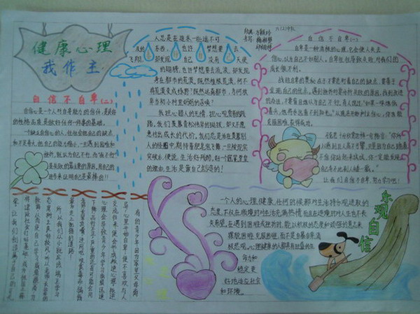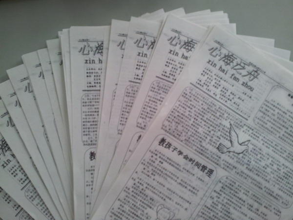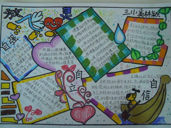 为了更好地推进心育工作,作为老师和家长同样要努力学习。我们自编了横小心理报——《心海泛舟》。《心海泛舟》每月一期,每位教师、学生、家长人手一份,从不间断。如今,《心海泛舟》已经编印至16期了!上面有教师辅导手记,有家长育子心得,还有校园新闻集锦等等,现在《心海泛舟》已成为师生、家长茶余饭后的一道精神营养餐了,大家一有空就争相阅读。它成了家长之间、家校之间沟通的桥梁。坚持“全员心育,打造精神乐园”,我们为着这个目标默默努力着,为创建横山桥中心小学明天的辉煌而不懈地付出着。横小的孩子们也有着惊人的才艺,近日,他们在各位班主任的精心指导下,编出了一份份精美的心理健康小报,真是令人赞不绝口啊!
