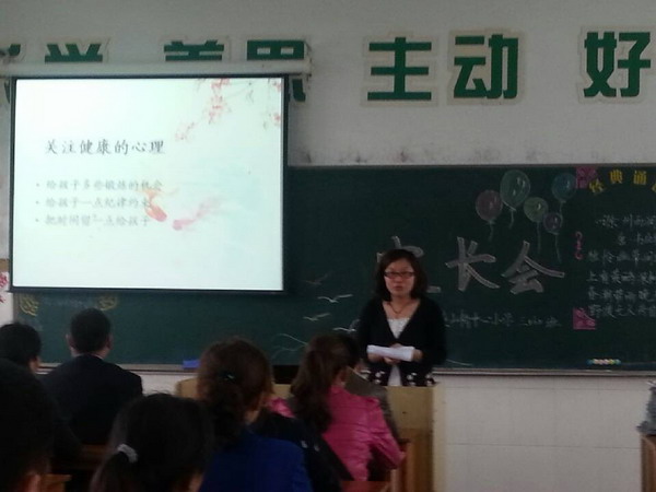 会议由学校德育办主任徐振红老师主持。此次家长会共分三个议程:首先由蒋建春副校长作了《家长,学校教育的同盟军》的讲话,蒋校长向各位家长朋友介绍了学校近几年来的发展状况、对学生的管理情况以及师资情况,让家长朋友对学校有了更细致、更深入的了解。他强调:近几年来,我们努力提供给学生较好的学习条件;我们努力提供给学生较美的学习环境;我们努力提供给学生较高水平的师资队伍;我们努力创造较鲜明的办学特色。接着,三年级级部主任是宝华老师向三年级的家长朋友介绍了三年级学生的变化、特点以及在孩子成长过程中家长们应该如何鼓励、引导,是主任特别提出至少要培养孩子的五种学习习惯:1、定时专心学习的习惯;2、学会合理安排时间;3、养成按时独立完成作业;4、养成复习和预习的好习惯;5、养成广泛阅读的习惯。这让在座的每一位家长都受益匪浅。最后,家长朋友来到了孩子所在的班级,以班级为单位,家长与孩子的班主任及科任教师,分别以《与孩子共同成长》、《托起明天的太阳》、《吾爱吾家》、《做孩子的护航使者》等为主题,就孩子的在校表现、家庭行为等方面内容进行了面对面的交流。