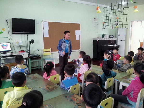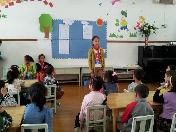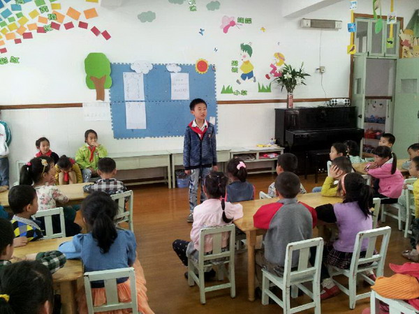 队员们的到来受到小朋友们的热烈欢迎。陆熠一马当先,先给小朋友们讲了一个《广告猪》的故事。故事通过和妈妈走失的小猪的经历,告诉小朋友们如果不幸和大人走散,千万不要慌张,要镇静地想办法。引人入胜的故事情节加上陆熠同学绘声绘色地讲述,听得小朋友们津津有味。紧接着赵阳同学给小朋友们讲了一个《怕吃药的小猴子》,这个故事是赵阳同学自己编的,为的是让小朋友们明白生病了就要及时治疗,从而改掉怕吃药的坏毛病。赵阳同学像说书一样的口吻对小朋友们很有震撼力。小朋友们随着故事情节的发展或喜或忧,心情似坐过山车。接着王若淳、徐寒怡、卞如嫣、杨坤等队员也纷纷为小朋友们讲了自己精心准备的故事。这些故事都通有精彩的情节,并含有深入浅出的意义,或告诉小朋友不能太爱打扮,或教育小朋友犯了错要勇敢承认,让小朋友们不仅听到了一个个精彩的故事,而且还懂得了不少道理。