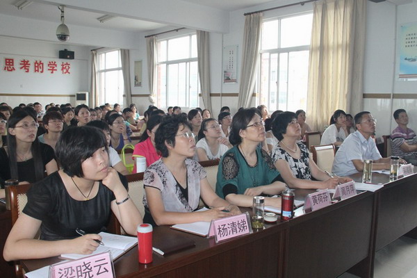王老师本次讲座的主题为“缔造完美教室,让每个生命在教室开花”。她首先解读了自己对于完美教室的理解。她说,尽管一千个教师就有一千个完美教室的样本,但完美教室应该有一个底线或者说是硬指标。其次,完美教室永远是一种朝向,一种追求;接着,王老师结合自己对完美教室的理解和探索,与全体班主任分享了她在朝向完美教室路上的思考与实践,概括起来就是十二个字,即:一家人(班级联盟的打造)、一个梦(共同价值系统的构建)、一起拼(以班级文化的营造、节日庆典的组织、班级课程的研发等为主的一系列活动,以营造共同的生活),一定赢(达到师生生命共同成长的目的)。王老师特别强调了班主任生命成长的重要性。她引用《第56号教室的奇迹》的作者雷夫的话说:是什么东西在决定教室的尺度——教师,尤其是小学教师。他的面貌,决定了教室的内容;他的气度,决定了教室的容量。只有教师的生命成长了,学生的生命成长才能成为可能。她和老师们分享了自己的成长故事:从三十花开亦美丽的干枝梅,到艺莲苑里的千瓣莲,永远怀抱着自己的理想,坚信着自己的力量,昭示着自己的存在,朝向完美的方向。王老师的讲话在全体班主任中引起共鸣,对大家触动很大,大家都认为王老师是一个有心之人,敢想敢做的一个思考者、实践者。