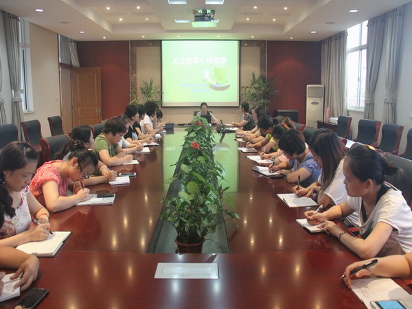 9月24日下午,横山桥中心小学全体心理课题组成员在学校小会议室济济一堂,参加《关注教师心理健康》讲座活动。