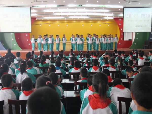 为感恩幸福生活,弘扬爱国精神,全面提升学生的合唱水平,活跃校园气氛,营造校园文化,构建和谐的教育环境,丰富学生的第二课堂生活,十月份横山桥中心小学德育办组织全校各班学生进行“三歌”比赛,以级部为单位开展。