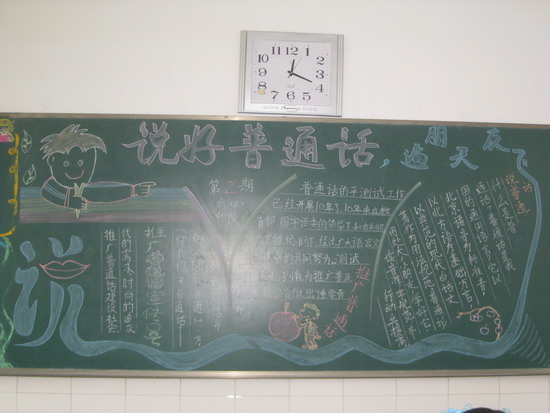 在全国第十四届“推广普通话宣传周”活动期间,我校三——六年级各班都积极响应学校号召,利用黑板报阵地宣传了讲普通话、写规范字的重要性,营造了浓郁的推普氛围。
