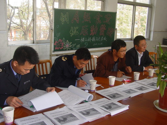 首先,周月萍校长向专家组汇报。周校长介绍说:阳光学校是一所外来工学校,镇党委为了解决外来人员子女就学的后顾之忧,委托中心校创办这所公办蓝天学校,让外来工孩子与本地孩子一样享受均衡的教育。原食堂由于修建公路拆了,经过三个月紧锣密鼓的重建配置,新食堂硬件设施焕然一新,从整体环境卫生,到设备设施,彻底改变了食堂的面貌,为学校创建A级食堂提供了必要的物质保证。学校要以争创A级食堂为契机,扎扎实实地抓好食品安全和食品卫生工作,提高服务质量,为广大师生提供安全放心的食品,以实际行动关爱外来工,让他们把横山桥当作第二故乡,安心建设家园。周校长的汇报深受专家组的肯定。接着专家组对食堂现场实地检查,专家们仔细地查看了仓库、粗加工间、备餐间、消毒间、更衣室等各功能区,对我校食堂建筑布局与卫生设施、食品加工存储、餐具消毒和食品留样进行了全方位的细查。随后评审组查阅了台帐资料,询问了关于食堂卫生管理方面的有关工作。专家组告诉我们,阳光学校是常州市第一个创A级食堂的外来工学校。