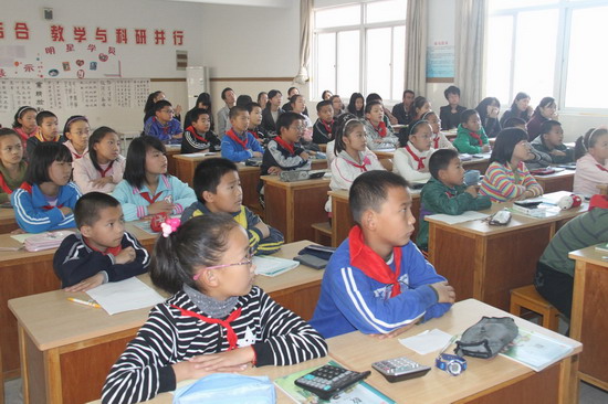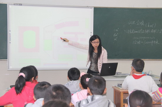 11月3日上午,全校数学课题组老师济济一堂于多媒体教室,观摩姚丹静老师执教的一年级《认识钟表》和蒋文老师执教的五年级《认识公顷》教学。