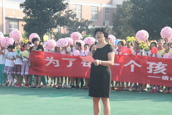 接着,周校长致辞,在《百年求真路》的报告中,她满怀激情地介绍了横小的百年历史,从小学堂走出了一条与旧式教育完全不同的教育之路,横小也在不断地用务实的行动与可喜的收获践行着自己的文化主张与教育宣言,也在精神传承与接力思考中续写着新的篇章。一代代学子从这里走向全国,走向世界,他们为家乡发展、祖国建设和人类进步作出了自己的贡献。最后,周校长希望我们全体横小人以百年校庆为契机,沿着“求真”之路不断研究,不断探索,不断实践,用真爱点燃梦想。