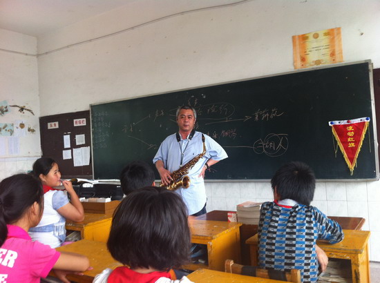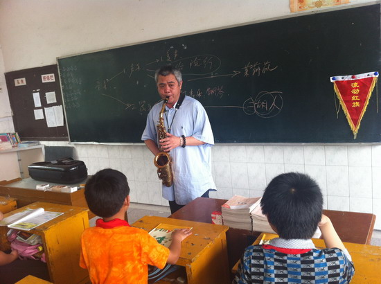 今天下午,“青苗音乐教室”将常州一位响当当的专业萨克斯手——张业炎老师送进我们学校。萨克斯——农民工孩子不熟悉的一种乐器,所以当张老师精神抖擞地走进教室时,孩子们除了兴奋更多的是好奇。和蔼可亲、个性爽朗的张老师首先介绍自己的经历,让孩子们明白了:只要勤奋努力,成功就在眼前。接着,他和孩子们互动聊生活中的“音乐”,还讲授了“音乐的种类”,让孩子们不光领悟到了生活中处处充满了“音乐”,还学到了不少音乐的知识。最后,张老师才亮出了他的宝贝——萨克斯,孩子们的眼睛一下子变得亮晶晶的了。为了演奏孩子们熟悉的曲子,张老师随手翻开了孩子们的音乐课本,一曲《走在乡间的小路上》瞬间将孩子们吸引住了,情不自禁地随着和唱,独特的旋律声和嘹亮的歌声将音乐课推向了高潮。