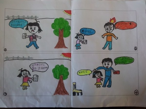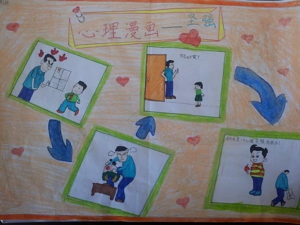 心理漫画是绘画治疗技术在心理健康教育的应用,它是集通俗性、幽默性、教育性于一体的心理辅导方式,它源于学生学习,生活实际。具贴近性和针对性,寓教于乐,引导学生关注心理关注自我,提高心理素质。所展示的漫画中取材于孩子们生活的点点滴滴,内容贴近学生,贴近生活,富有启发性和励志性。简单的漫画中体现了深刻的道理,采用夸张的笔墨和幽默的语言反应了孩子们的各种情绪。内容丰富,融思想性和艺术表现于一体,展示了我们横山桥中心小学学生积极健康,乐观向上,充满活力的精神风貌。