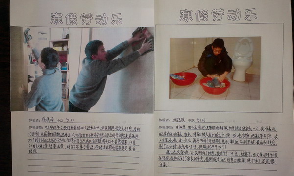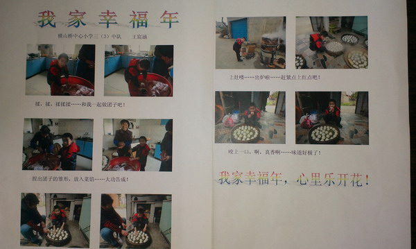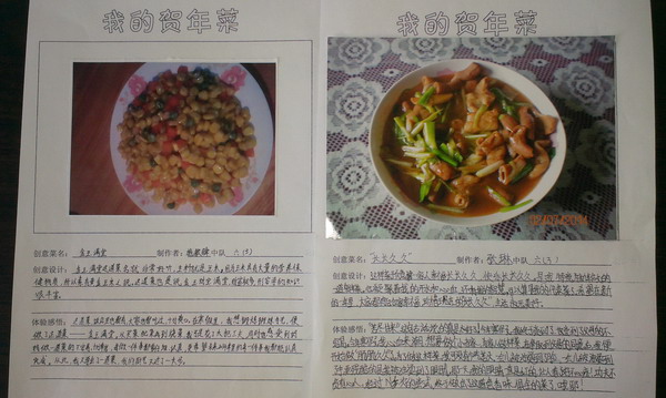 新春佳节,走亲访友,一家团圆,是多么温馨热闹呀!队员们懂得“感恩父母、关爱老人”是自己的责任。大家在寒假帮父母做顿可口的饭菜,扫扫地,擦擦桌子,洗洗碗等力所能及的家务。瞧,过年了,队员们挽起袖,做起了贺年菜。创意的造型,创新的菜名,这一道道菜里,饱含的是孝心。通过假期的自主参与活动,队员们体验到了参与的快乐,同时也明白了父母的辛苦。