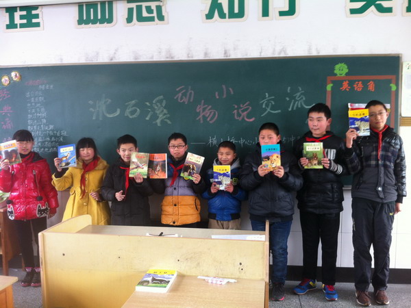 西双版纳的动物世界给沈石溪带来了无穷的灵感,经过20年的笔耕,沈石溪为我们创造了一个神秘的动物王国。狐狸、狼王、鹿王、战象、猎狗、羚羊等都在他的动物故事里担任过主角。他熟悉这些动物的生活习性,更为难得的是,他赋予这些动物的行为以强烈的感情色彩,去深深地感动读者,并给读者以生命的启示。2月26日下午,横山桥中心小学六年级级部举行了沈石溪的动物小说阅读交流会。看,孩子们带来了沈石溪老师的各种各样的书——《红飘带狮王》《最后一头战象》《残狼灰满》《象母怨》《混血豺王》等等。