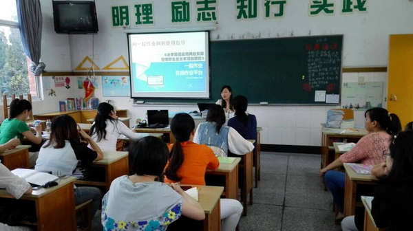 本学期课题组加入了两位新来的英语教师:陈晓旭和王丽萍,相信随着人数的增加,研究的力量也会增大。在明确了本学期的工作安排后,进入本次的重点:对一起作业网的使用指导。 “一起作业网”是中国教育学会大型课题新课标形式下小学英语网络作业形式探究的名字,专注小学英语和小学数学学科,为老师、学生和家长三方提供在线互动教学服务;对教师来说,可以轻松创建与网上班级,并实现一键布置和检查全班作业;免费使用来自全国重点名校的最新真题题库,实现个性化的班级组卷,提升学生应试能力;由于网站所有学习资源均与各学科对应的数十种教材同步,方便老师和学生使用;而且智能生成班级成绩报告,知识点掌握情况一目了然;对学生而言,学生可以通过一起作业这个网络平台,在线做作业。作业类型都是以学生喜爱的游戏形式出现的。本课题主要依托的平台就是“一起作业网”,因此对它的使用指导就显得尤为重要,由课题组卢静对大家进行使用培训。指导大家如何注册,登入,创建班级,导入学生名单,怎样布置作业,如何查验作业,评价学生等一系列平台使用过程的概况。最后结合我们学校的情况班级学生生源大多数来自外地,家庭条件差,大家探讨怎样实施,如何组织更为有效,大家在交流中认真商讨,气氛温馨而严肃,注重对可能出现的问题开展探讨,尝试解决问题。