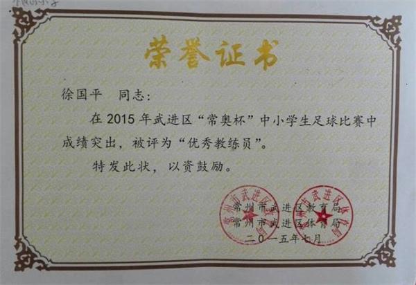 区优秀教练员证书